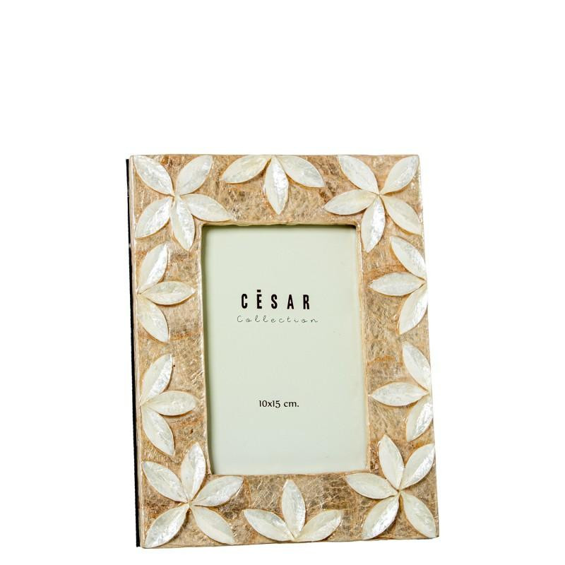 Portafotos de nacar para fotografia de 10x15cm con flores en relieve en natural y tostado 22x17x1 cm
