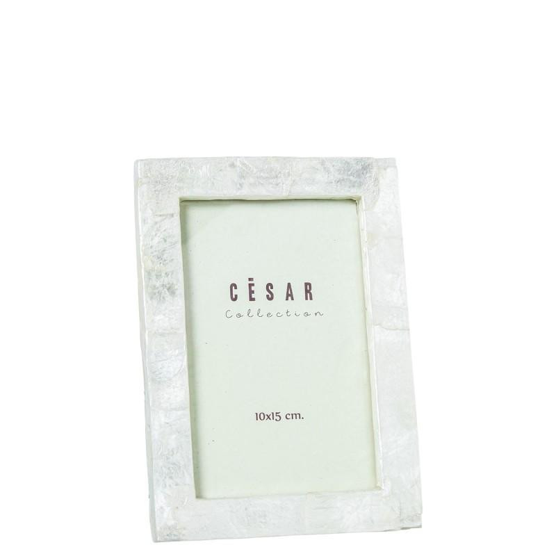 Portafotos para fotografia de 10x15cm de nacar con marco fino en natural 17.5x12.7x1.2 cm