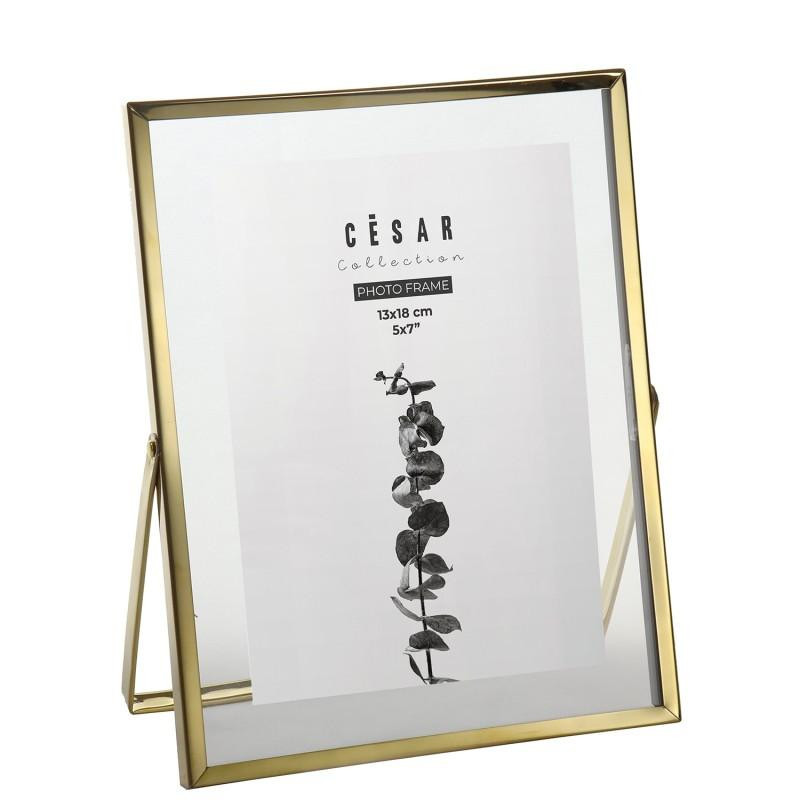 Portafotos para fotografia de 13x18cm de cristal y metal en dorado 18.3x23.5x1 cm