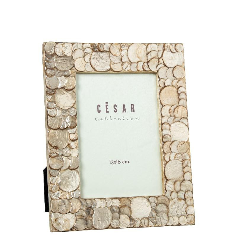 Portafotos para fotografia de 13x18cm de nacar con circulos en tostado 24.5x19.5x1 cm