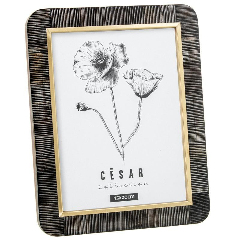 Portafotos para foto de 15x20 de resina con base de madera blanco hueso y negro. Medidas: 15x20x1.5 cm