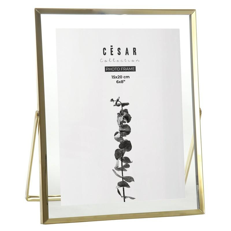 Portafotos para fotografia de 15x20cm de cristal y metal en dorado 20.8x26x1 cm