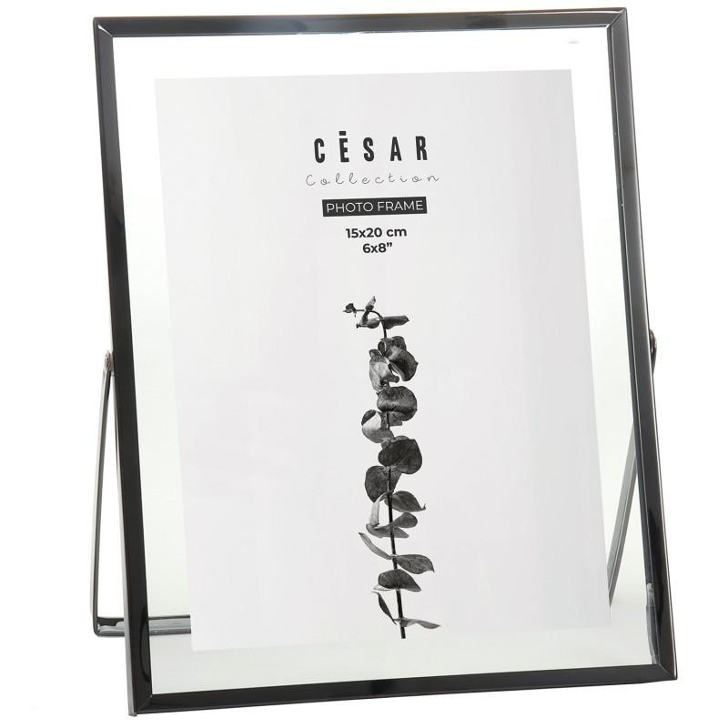 Portafotos para fotografia de 15x20cm de cristal y metal en gris plomo 20.8x26x1 cm
