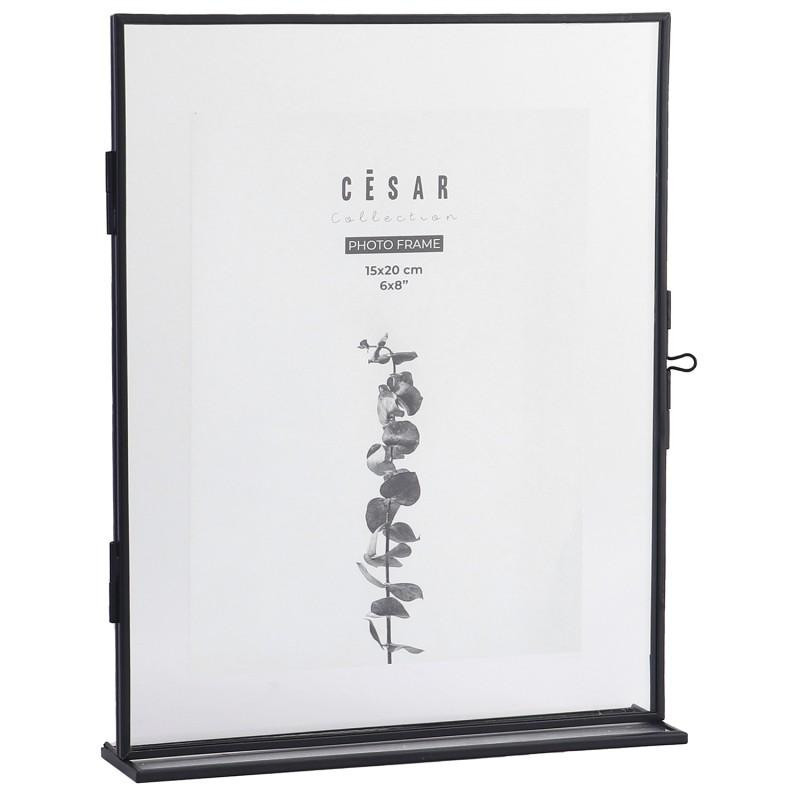 Portafotos para fotografia de 15x20cm de cristal y metal en negro 21x26.5x5 cm