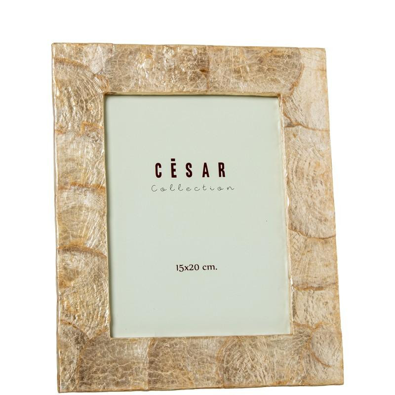 Portafotos de nacar para fotografia de 15x20cm en tostado. Medidas: 22x27.5x1cm