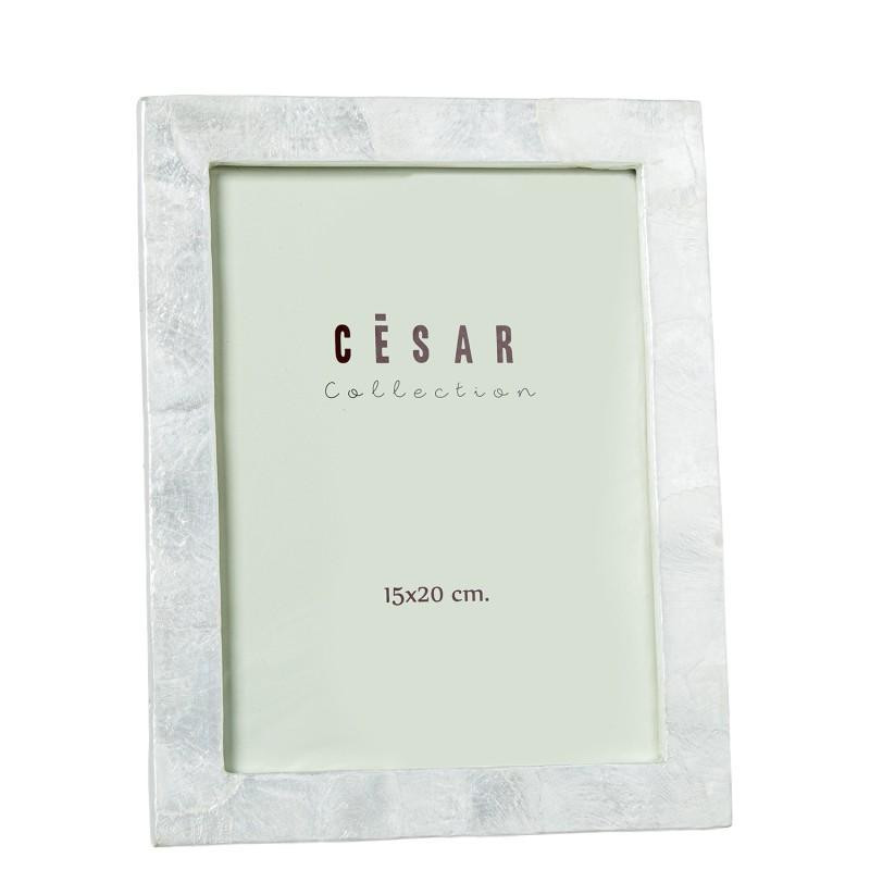 Portafotos para fotografia de 15x20cm de nacar con marco fino en natural 22.8x18.8x1.2 cm