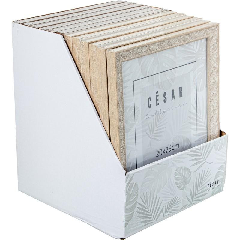 Set de 12 portafotos de 20x25cm de ps surtidos con display y trasera dm en natural. Medidas: 20x25x1.5 cm