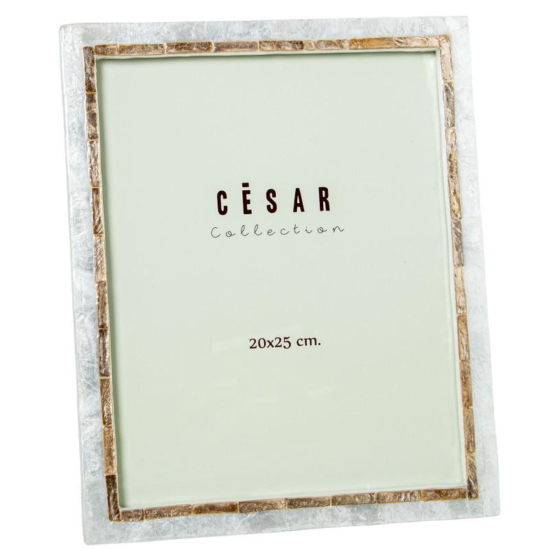 Portafotos para fotografia de 20x25cm de nacar con marco fino en natural y tostado. Medidas: 22.8x28x1.2cm
