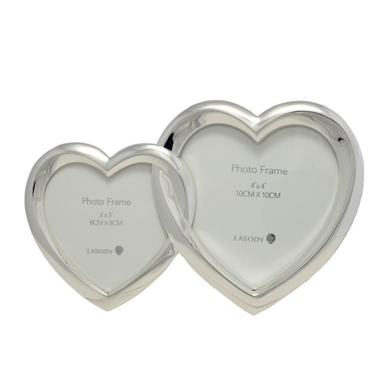 Portafotos corazon doble de metal plateado para foto de 10x10 cm y 8x8 cm foto de 10x10 cm y 8x8 cm