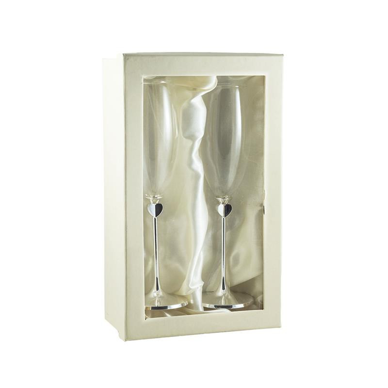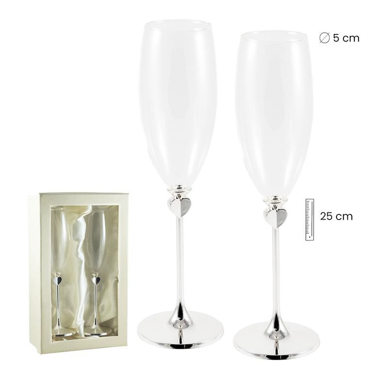 Set 2 copas de champagne con corazones Ø5x25 cm