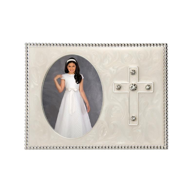 Portafotos comunion nacarado con cruz para foto de 6x8 cm 14x12 cm