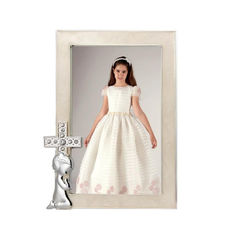 Portafotos comunion nacarado con cruz para foto de 10x15 cm 12x17 cm