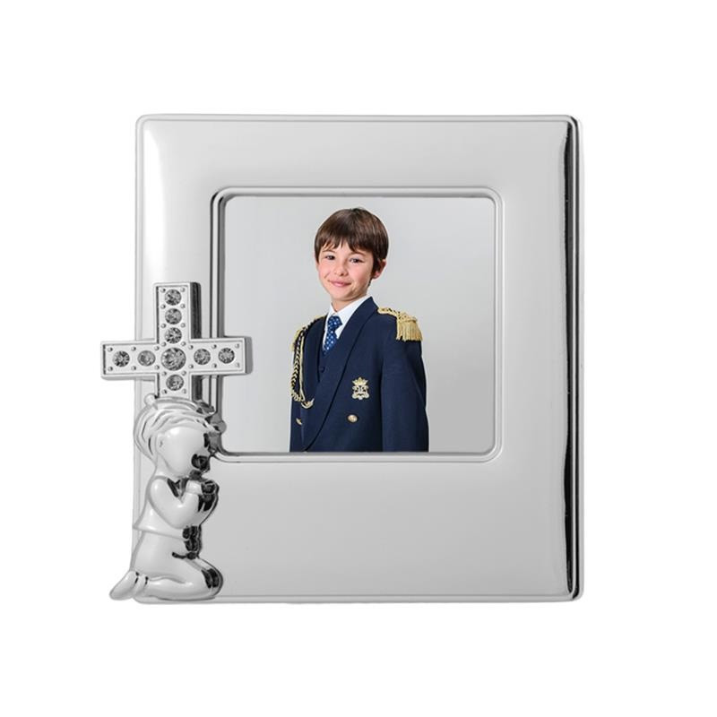Portafotos comunion plateado con cruz para foto de 7x7 cm 13x13 cm