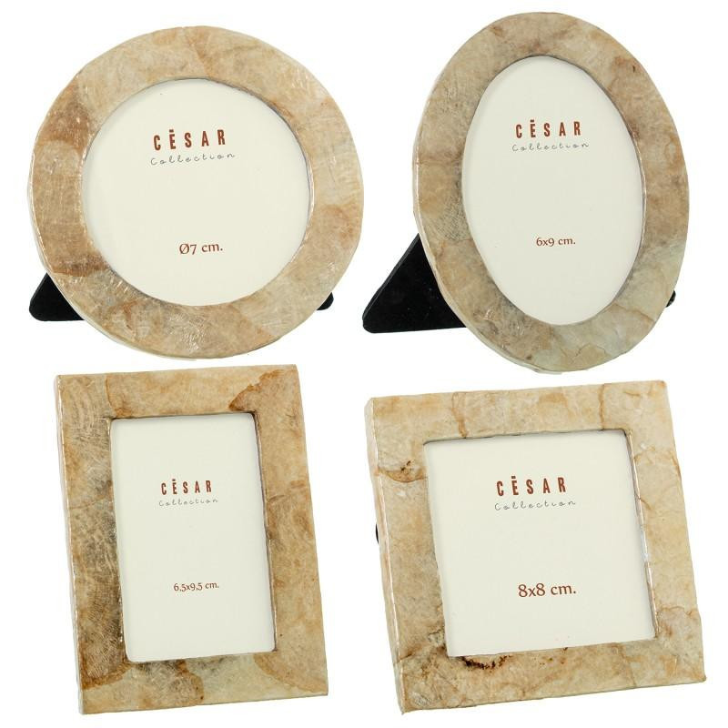 Set de 4 mini portafotos surtidos de nacar en tostado 10.4x10.4x1.2 cm