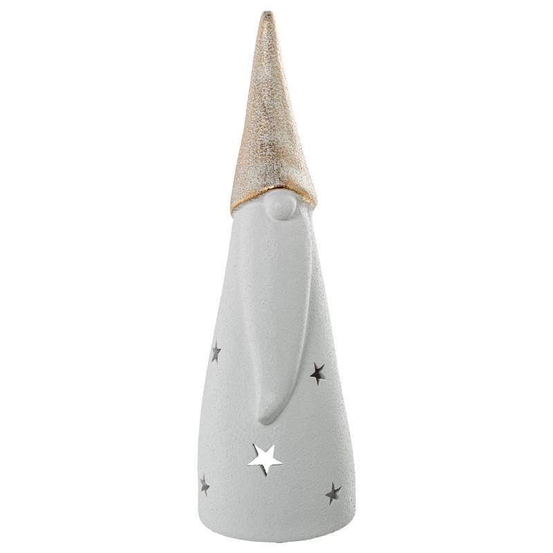 Figura portavelas de un duende de ceramica en blanco y dorado 13x43cm43x13x13 cm