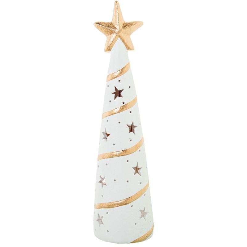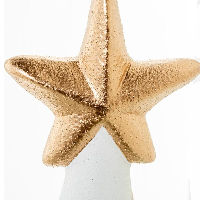 Figura portavelas de un pino con estrella de ceramica en blanco y dorado 13x13x51cm51x13x13 cm