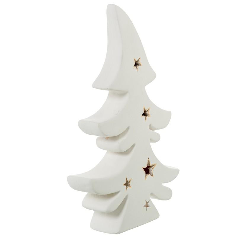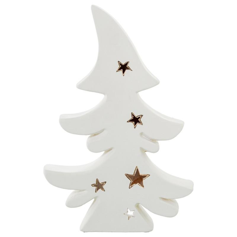 Figura portavelas de un pino con estrellas de ceramica en blanco y dorado 22x5x34cm34x22x5 cm