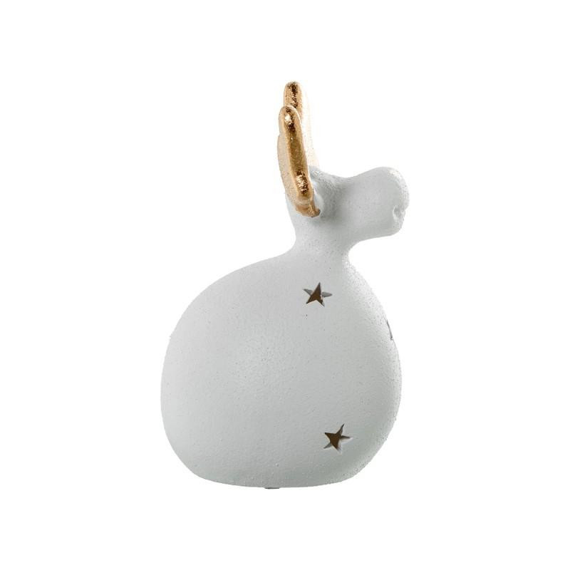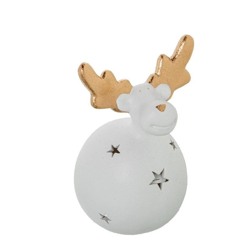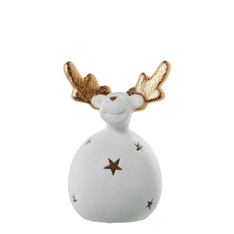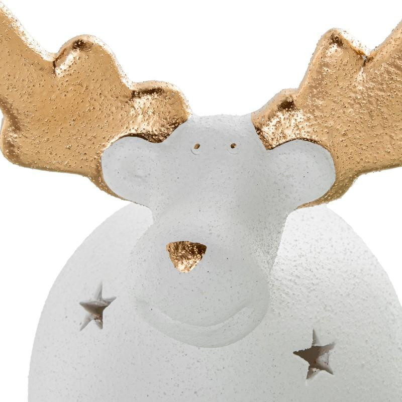 Figura portavelas de un ciervo de ceramica en blanco y dorado 17x17x26cm26x17x17 cm