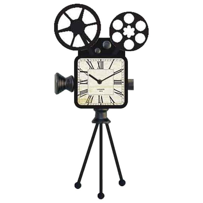 Reloj de sobremesa de una camara de cine de metal en negro y blanco. Medidas: 25x15.5x49.5cm
