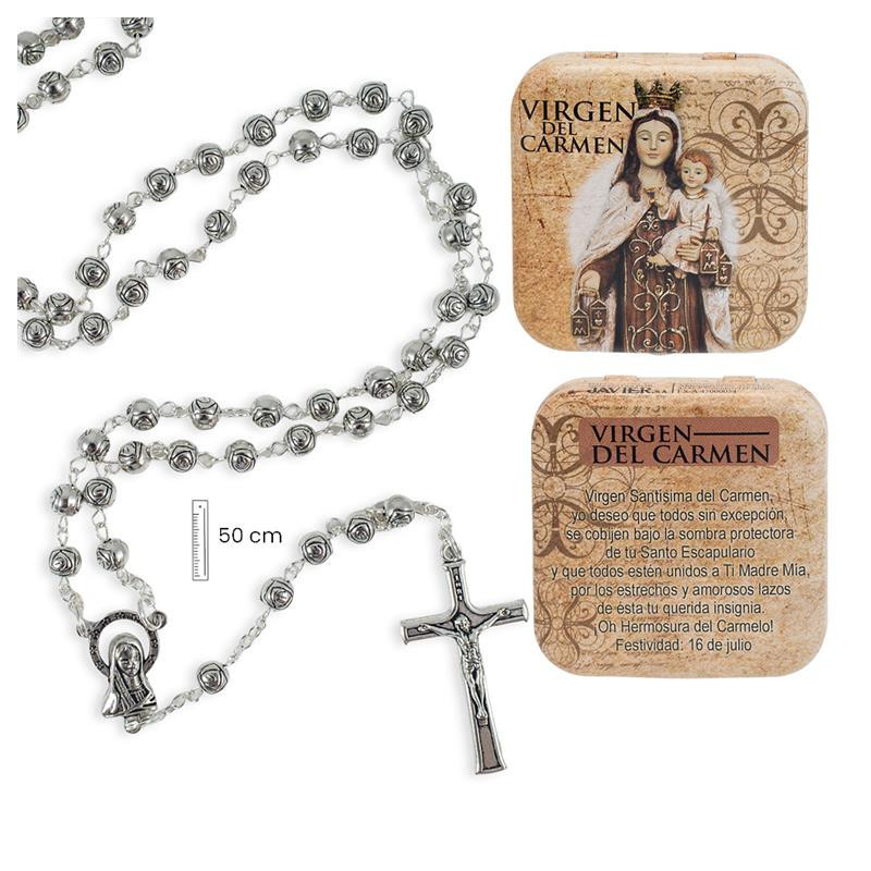 Rosario metal Virgen del Carmen con caja metalica 3x1x50 cm