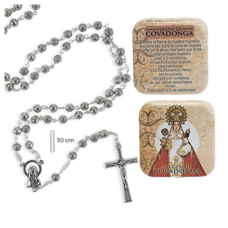 Rosario metal Virgen de Covadonga con caja metalica 3x1x50 cm
