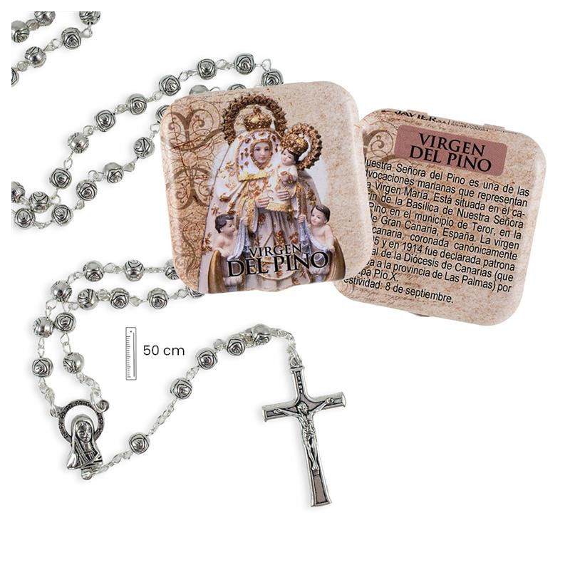 Rosario metal Virgen del Pino con caja metalica 3x1x50 cm