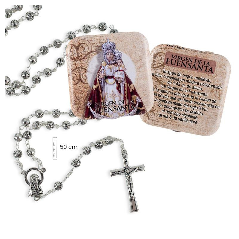 Rosario metal Virgen Fuensanta con caja metalica 3x1x50 cm