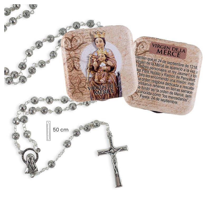 Rosario metal Virgen de la Merce con caja metalica. Medidas: 1x50x3 cm
