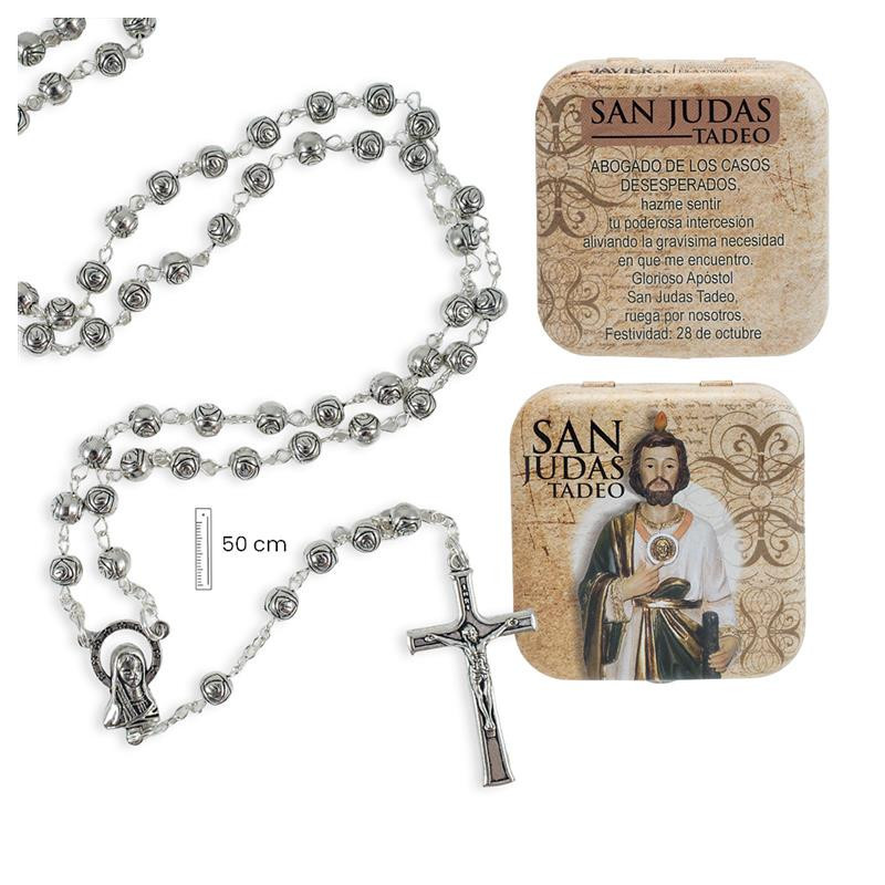 Rosario metal San Judas con caja metalica 3x1x50 cm