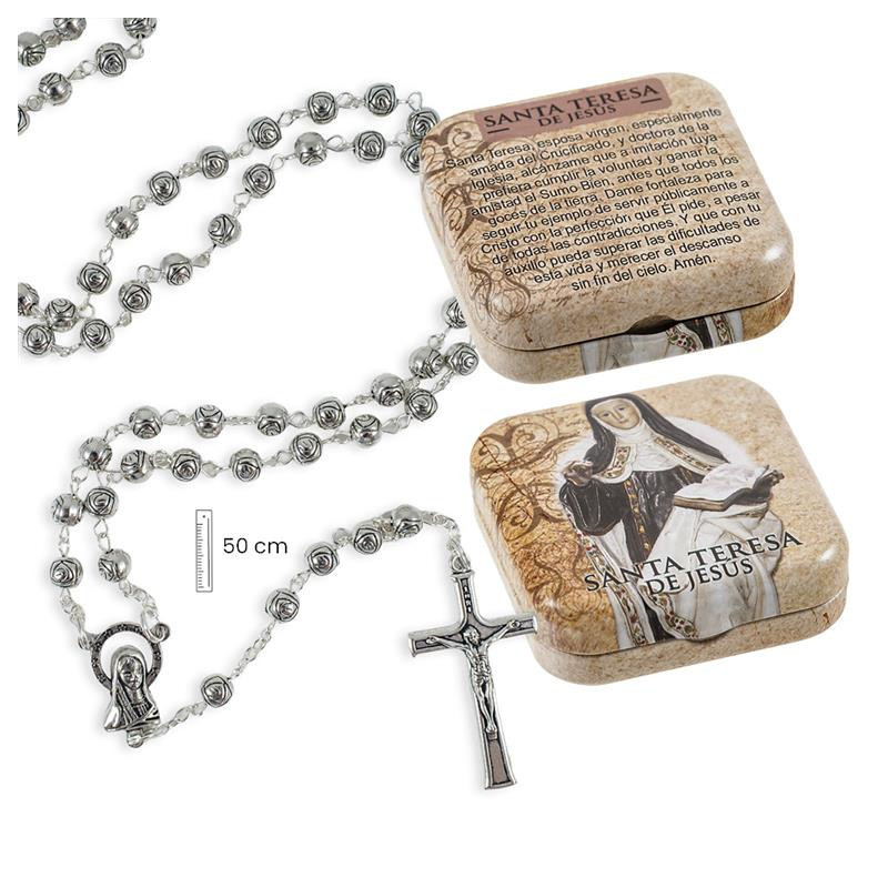 Rosario metal Santa Teresa con caja metalica 3x1x50 cm