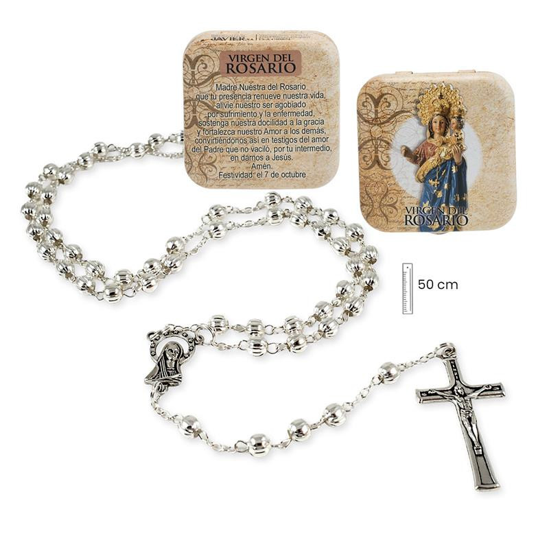 Rosario metal Virgen del Rosario con caja metalica 3x1x50 cm