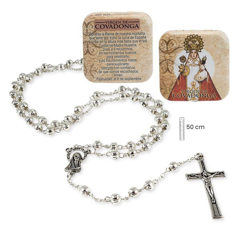 Rosario metal Virgen de Covadonga con caja metalica 3x1x50 cm