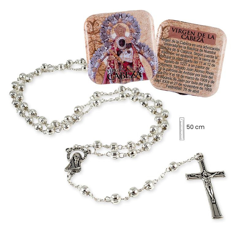 Rosario metal Virgen de la Cabeza con caja metalica 3x1x50 cm