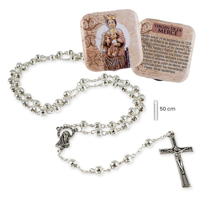 Rosario metal Virgen de la Merce con caja metalica. Medidas: 1x50x3 cm