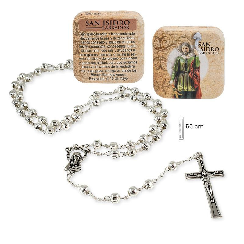 Rosario metal San Isidro Labrador con caja metalica 3x1x50 cm