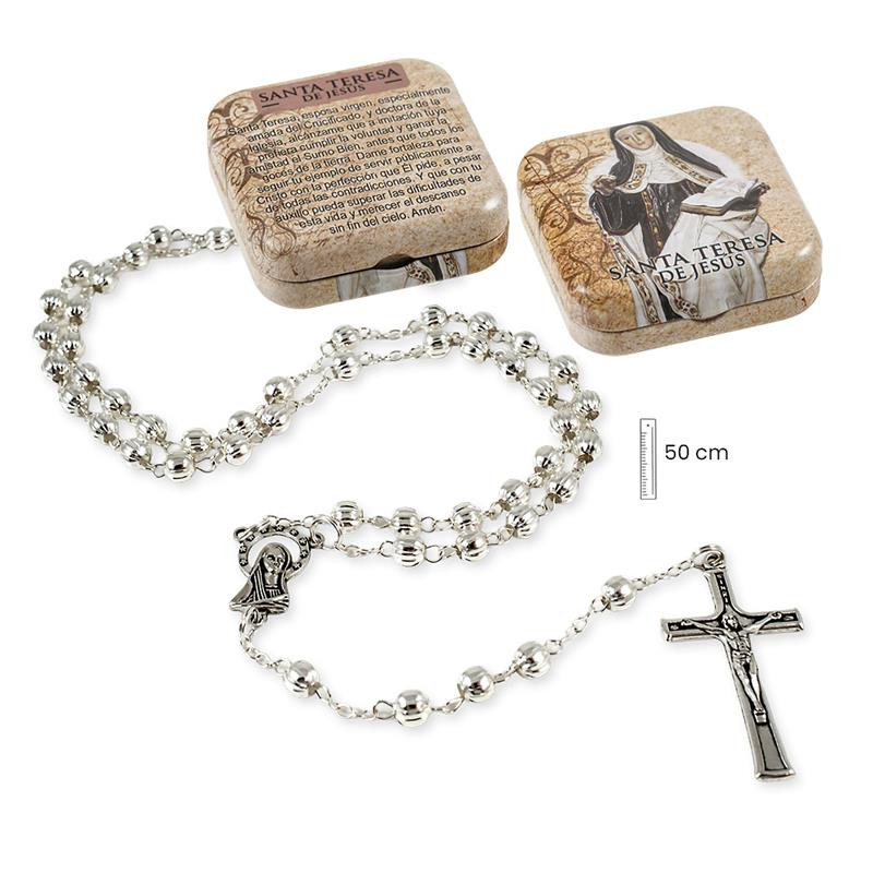 Rosario metal Santa Teresa con caja metalica 3x1x50 cm