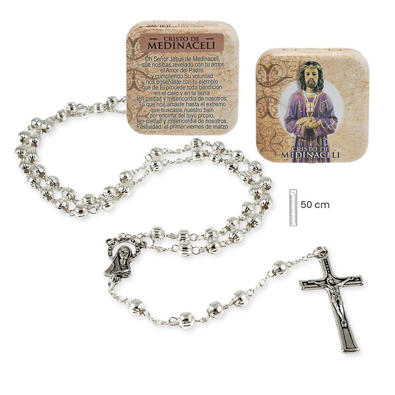 Rosario metal Cristo de Medinaceli con caja metalica 3x1x50 cm