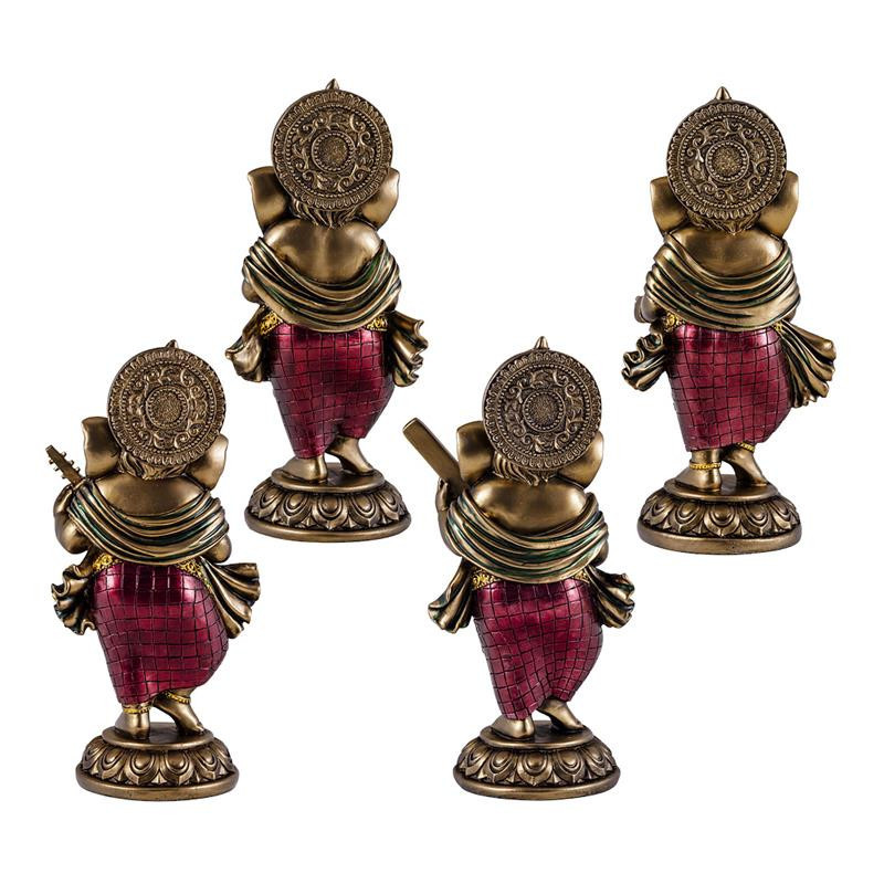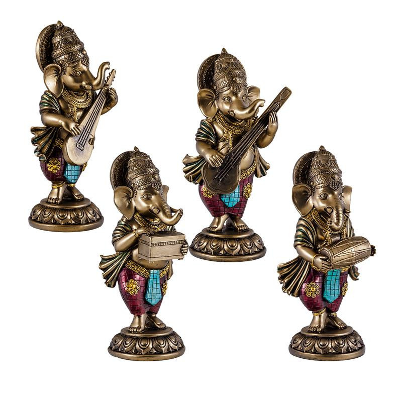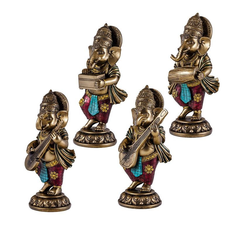 Set 4 figuras Ganesha tocando instrumentos de resina pintado a mano 20 cm