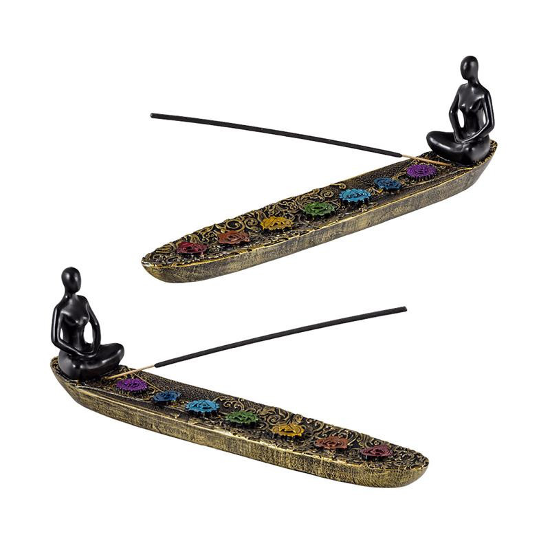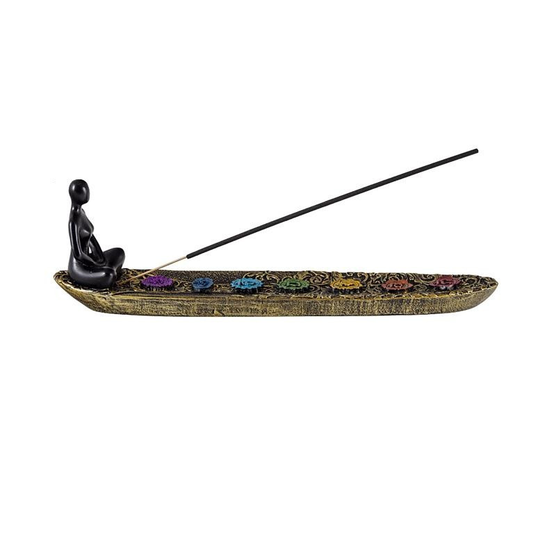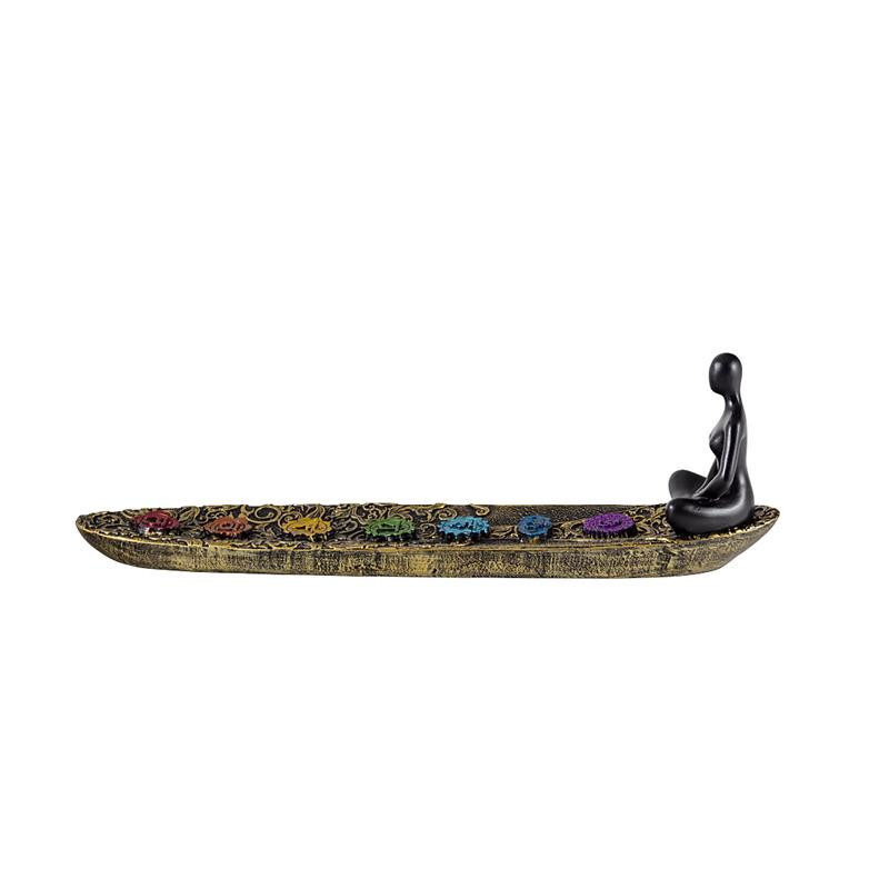 Portainciensos horizontal de resina de yoga pintado a mano 26x8 cm