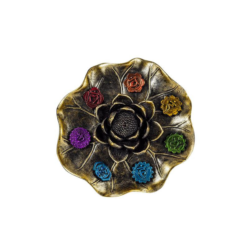 Porta incienso flor de loto de resina pintado a mano dorado. Medidas: Ø12.5x4 cm