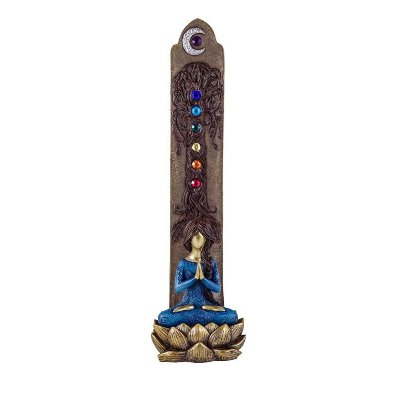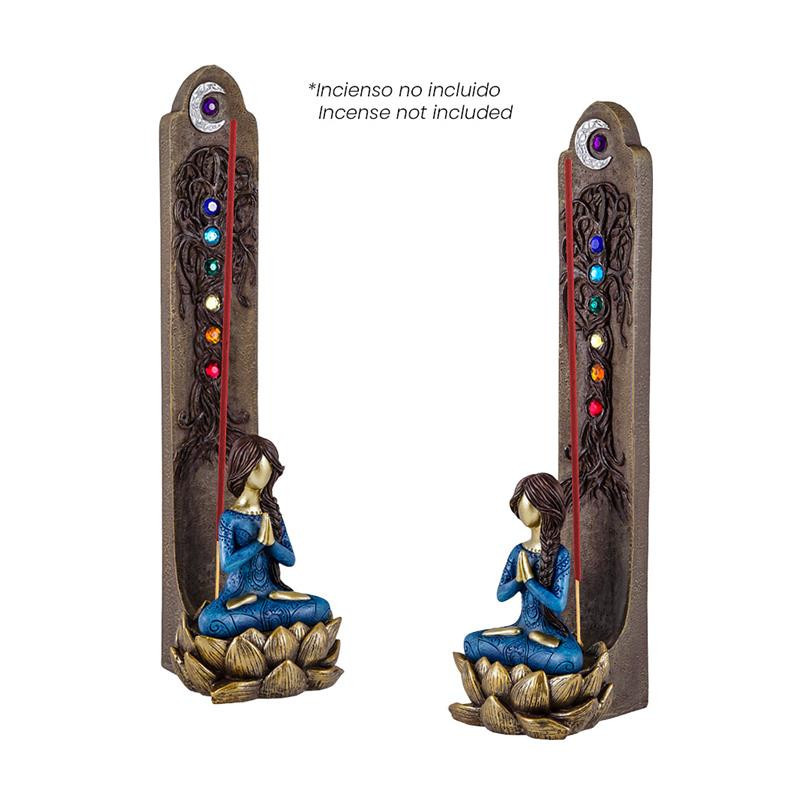 Portainciensos horizontal de resina de yoga pintado a mano 3x5x29 cm