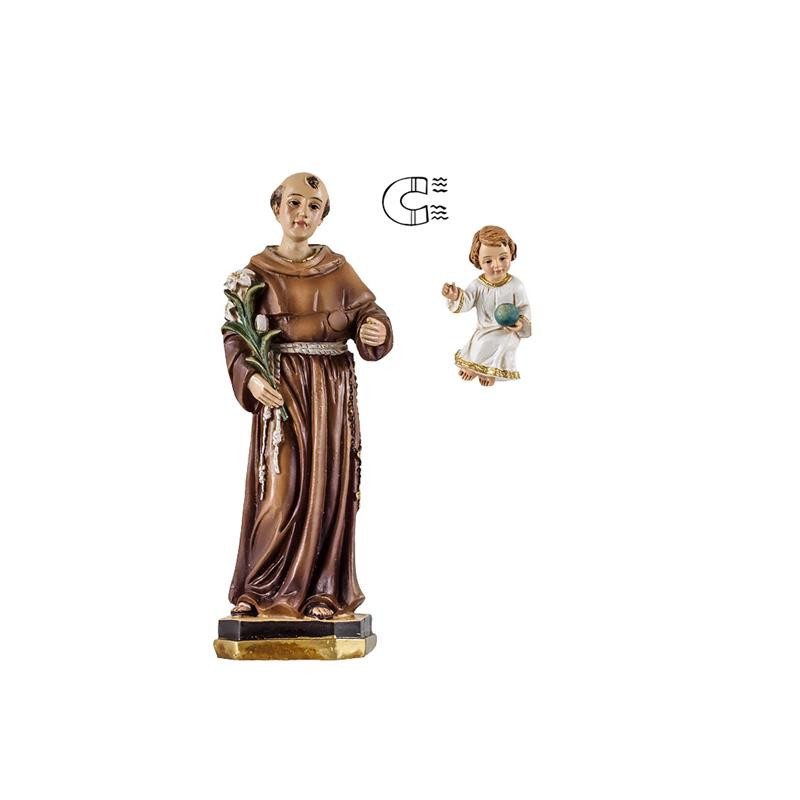 Figura de San Antonio de Padua Patrono de los Objetos Perdidos, de quienes buscan pareja, construccion y celiacos con niño suelto con iman de resina pintado a mano. Medidas: 13 cm