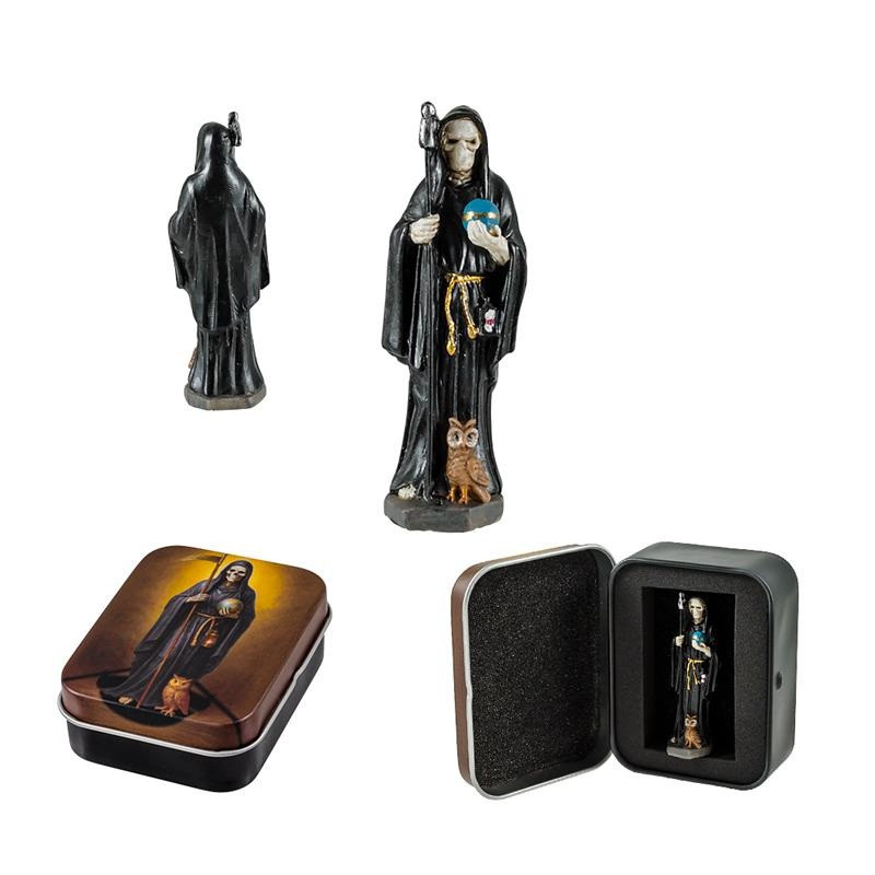 Mini figura de la santa muerte negra de resina 2x2x5 cm