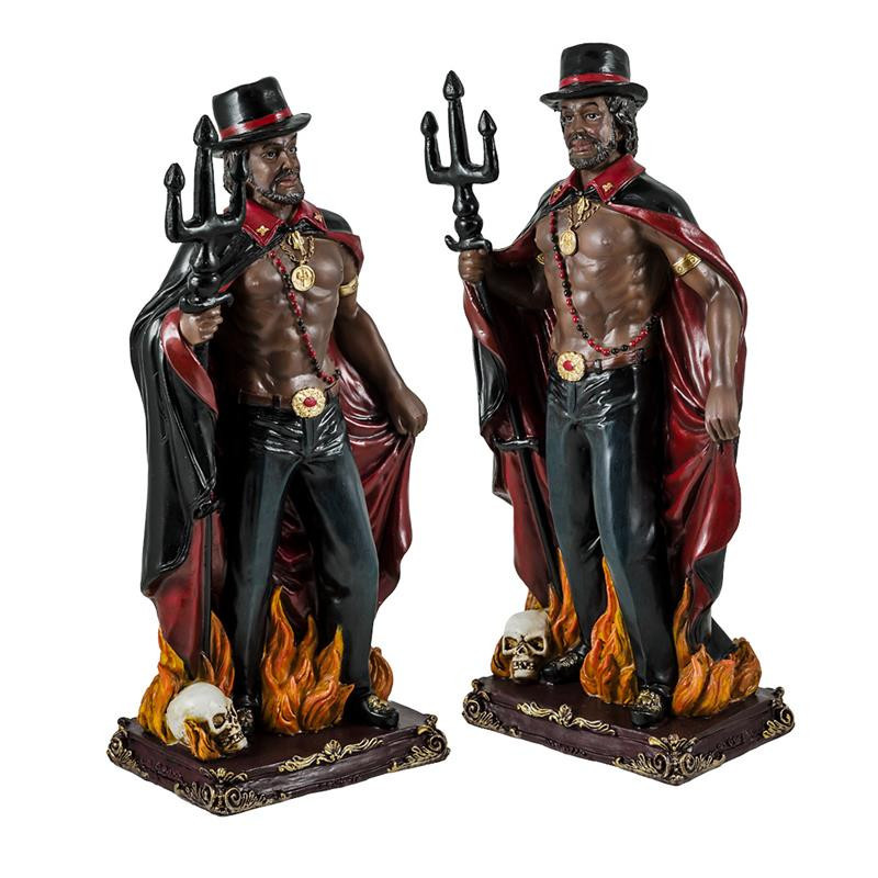 Figura Exu orisha deidad de comunicación y transformación de resina pintado a mano 15x15x30 cm