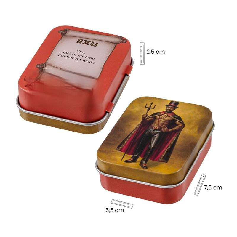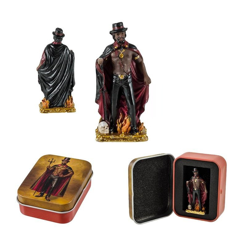 Mini figura de Exu de resina. Medidas: 2x5x2 cm