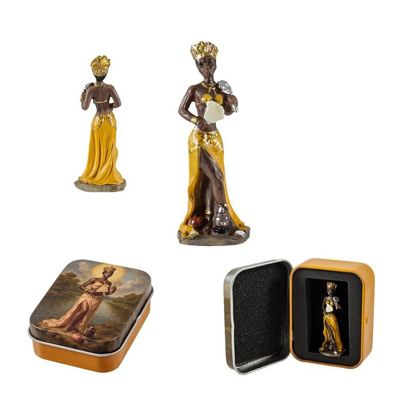 Mini figura de Oshun de resina. Medidas: 2x5x2 cm