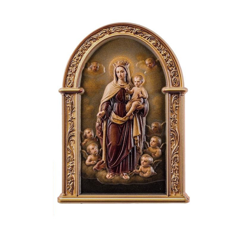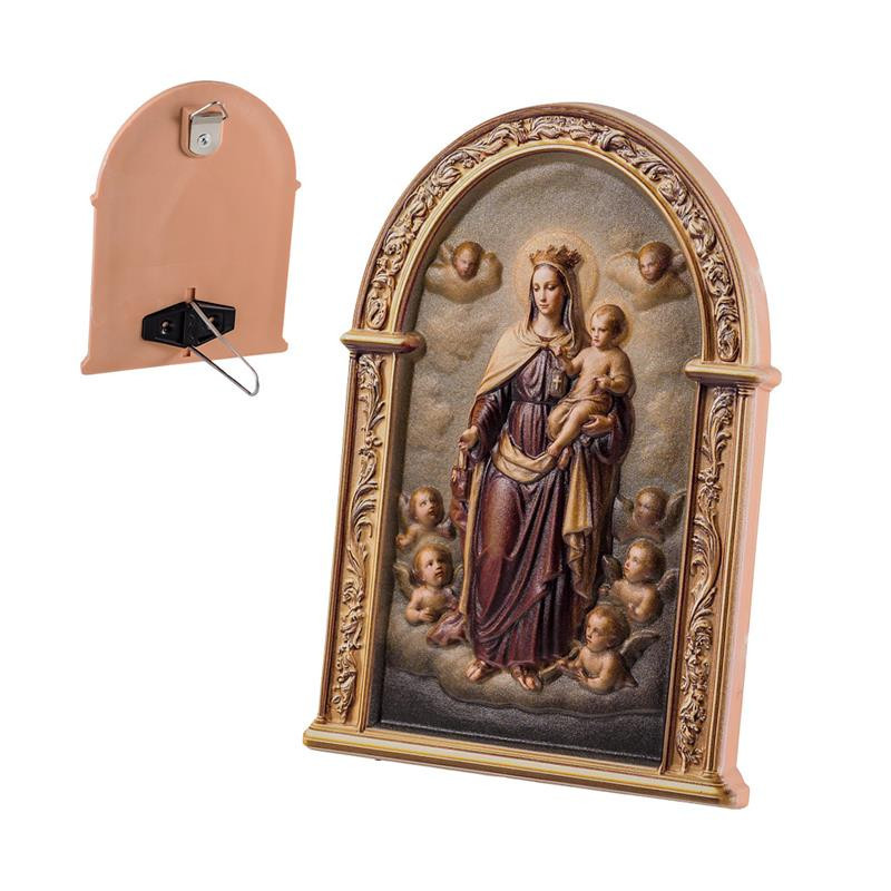 Placa Virgen del Carmen de madera para colgar de la pared o poner en mesa. Medidas: 2x15x11 cm