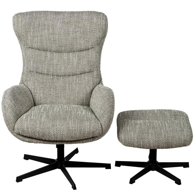 Sillon relax giratorio con reposapies de metal y tela en gris y negro 75x82x108cm108x75x82 cm