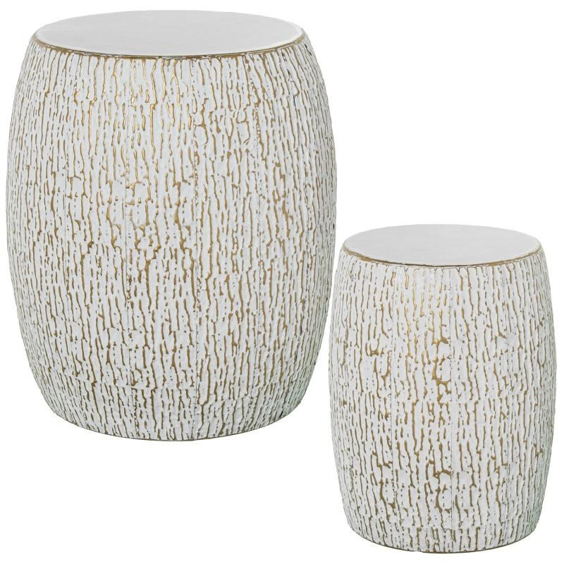 Set de 2 taburetes redondos de metal dorado y blanco 46x41x41 cm