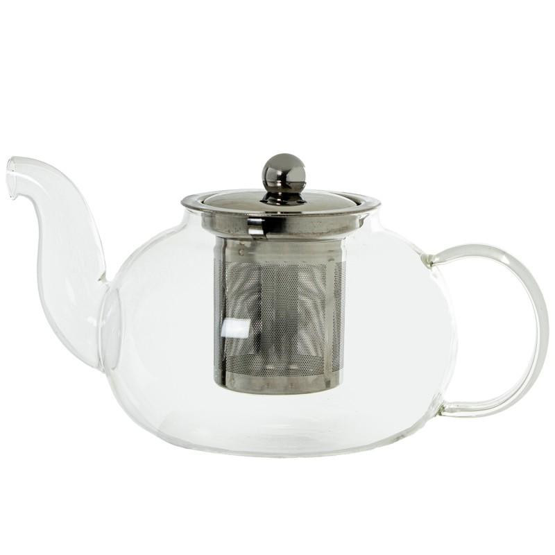 Tetera de cristal borosilicato de 800ml con filtro de acero transparente y cromado 20.5x13.5x9 cm